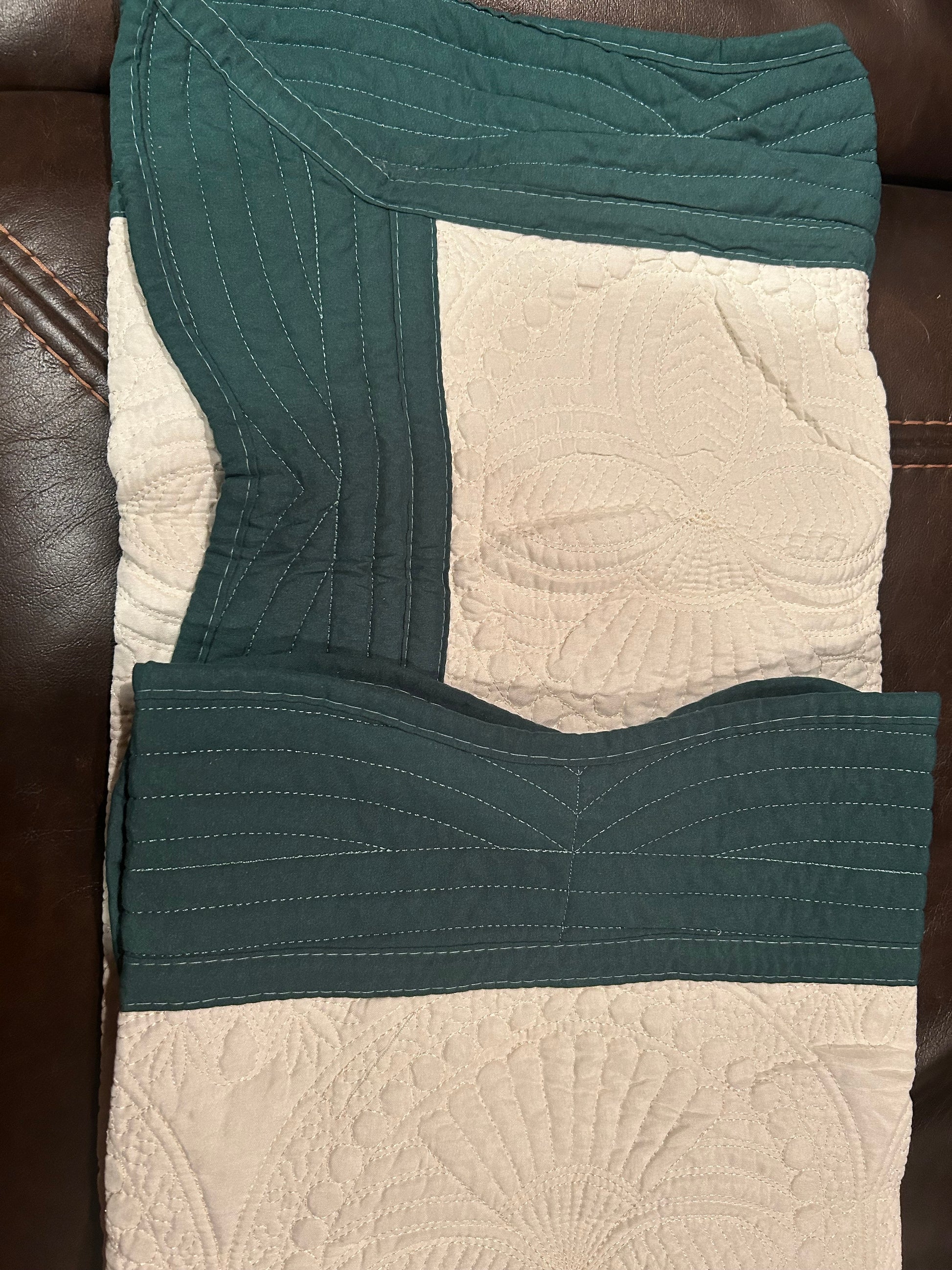 Forest green trim with ivory center